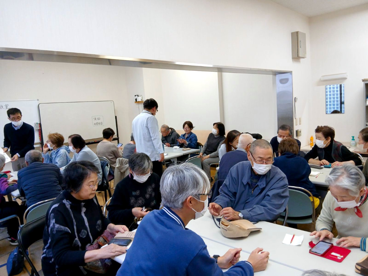 今回は「東京アプリの登録・他」凄い反響です!お互いに教え合いながら、解らない箇所はボランティアの方、職員に声かけして登録していきます。これでいいの?どぉ?わからない!色々な声が飛び交ってました。次回4/4(土)14:00 予約なし。参加自由。